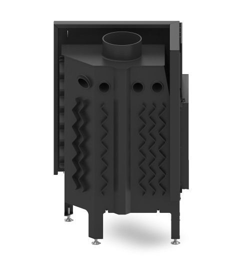 Удобство использования и регулировка: Стальное основание вставки оснащено пластинчатой воздушной заслонкой, что обеспечивает эффективную регулировку тяги. Специально разработанная задняя часть корпуса позволяет подаче вторичного воздуха в верхнюю часть горней камеры, повышая эффективность устройства.